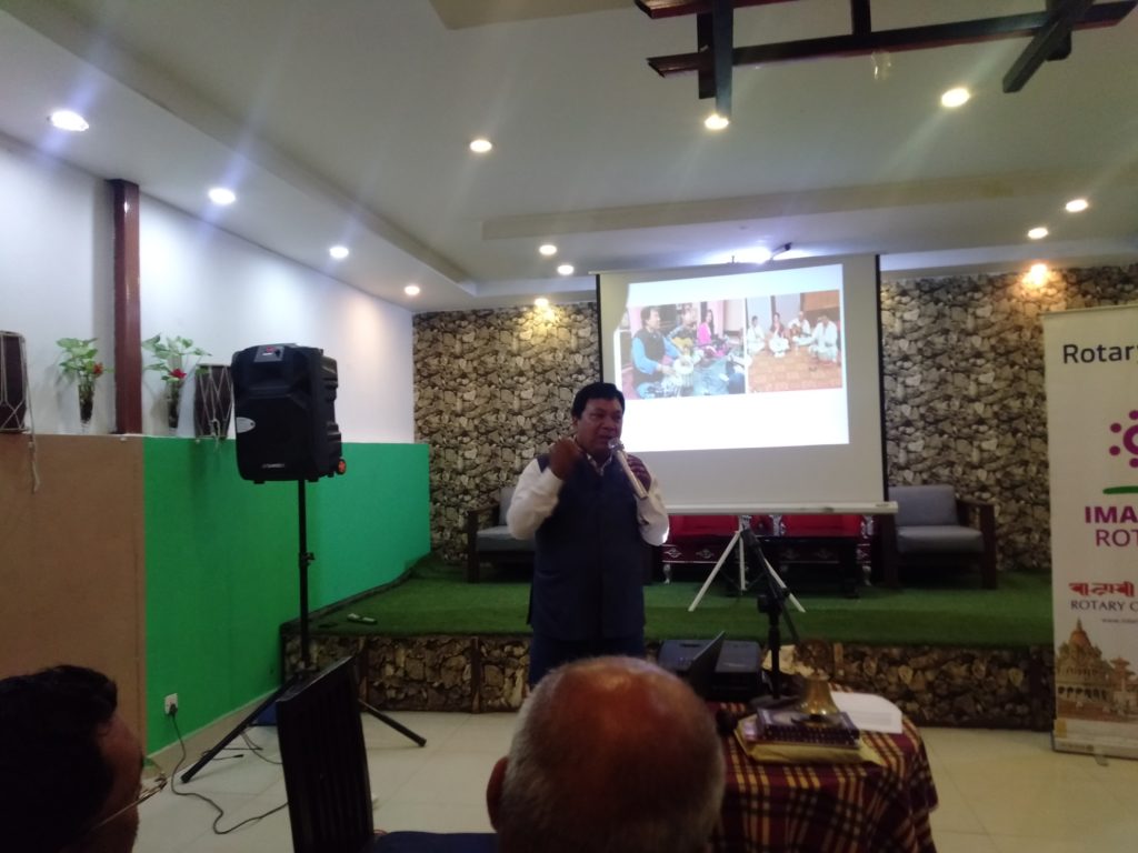 Renowned tabla maestro and founder of the band Sur Sudha, Surendra Shrestha, captivated the audience with his inspiring talk program titled “The Journey of Sur Sudha.” Surendra Shrestha shared personal stories, triumphs, and challenges encountered along the way, shedding light on the dedication and hard work required to succeed in the music industry. The interactive session allowed attendees to gain valuable insights and ask questions. As a token of appreciation, PP Rtn Dr. Sumitra Manandhar Gurung, PP Rtn Sarita Shrestha, and PP Rtn Urmila Shrestha presented a Rotary T-shirt to the speaker. The talk program was followed by a fellowship program where Rtn Jeetendra Nakarmi, Rtn Prem Shrestha, Rtn Shobha Shrestha, President Rtn Gautam Shrestha, and Guest Speaker Surendra Shrestha sang a few songs. Rtn Prem Shrestha and Rtn Anju Shrestha sponsored fellowship program. 41 participants participated in the program.