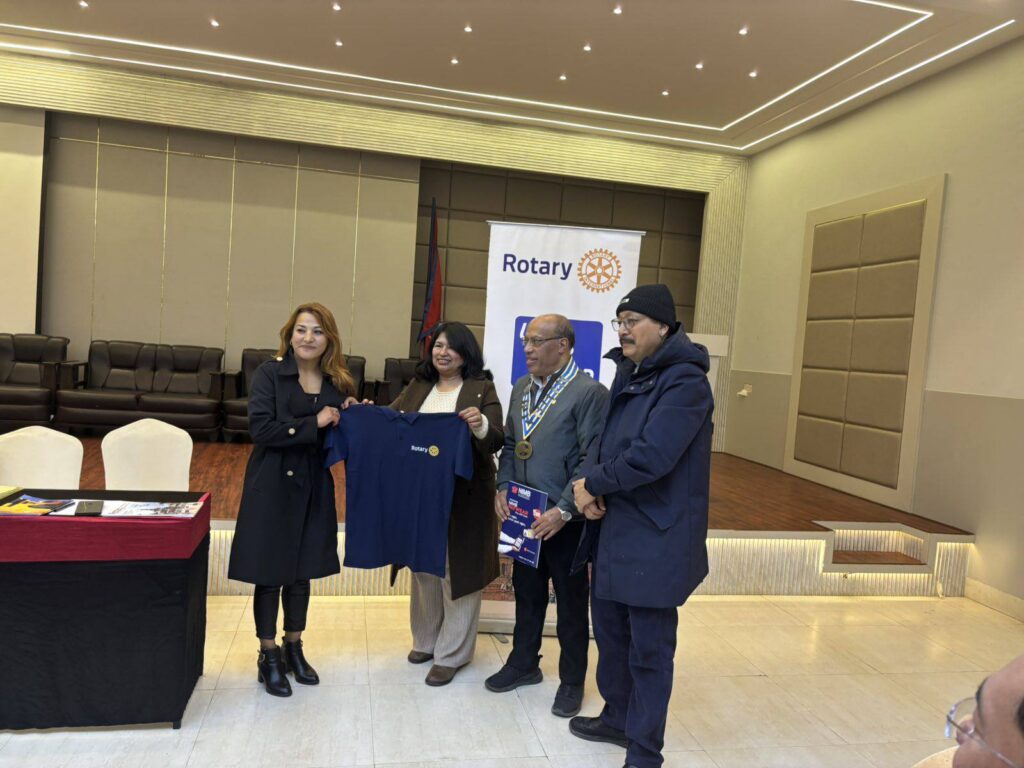President Rtn Om Shanker Shrestha presented a token of appreciation to the speaker, thanking her for her outstanding presentation.