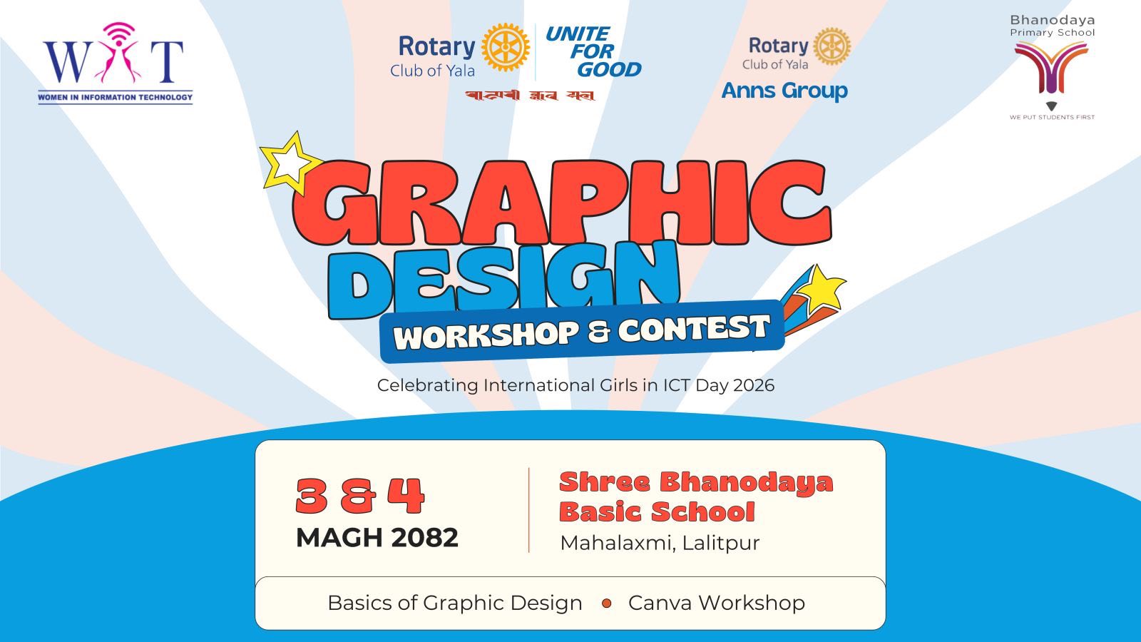 A two-day (17-18 Jan 2026) Graphic Design Orientation & Poster Contest was successfully conducted at Shree Bhanodaya Basic School, Sanagaun, MahaLaxmi Nagar Palika, empowering middle school students with creative digital skills. Students enthusiastically learned basic graphic design concepts using Canva and expressed their ideas through posters on Cyber Security, Online Safety, Girls in ICT.